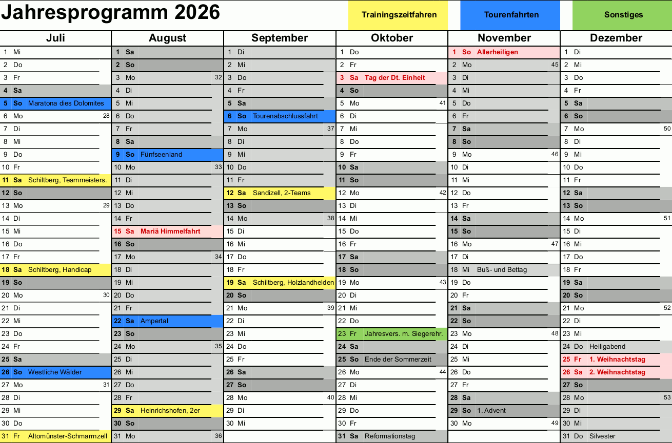 Fr. 23.10.2026 19:00 Uhr Jahresversammlung mit Siegerehrungen (Bergwertung, Teamwertung und Tourenwertung). Ort: Aichach, „Bauerntanz“